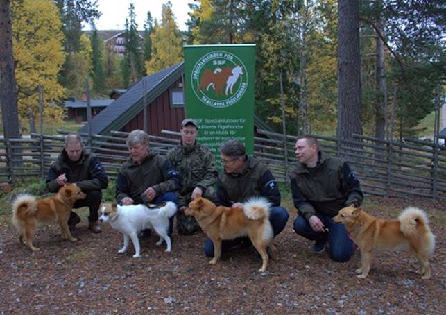 Kuvassa Suomen joukkue vasemmalta Hakojen Halla/Jyrki Ilmonen, Mahonkanmäen Zäkä/Kauko Grönholm, joukkueenjohtaja Thommy Svevar, Karahkan Eka-Essi/Sauli Halttunen ja Koppelokankaan Hilla/Antti Vasarinen.